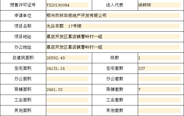 预售许可证号:YS20190084 鄂州市林华房地产开发有限公司-光谷东郡17号楼