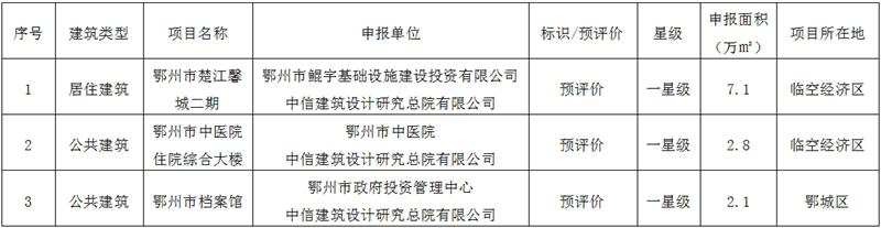 鄂州市2024年第1批绿色建筑评价标识(预评价)项目