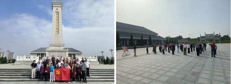 在鲜红的党旗下,史立新副书记带领全体党员重温入党誓词,铮铮誓言回荡在纪念园上空,表达了老党员们不忘初心、牢记使命的坚定信念。随后,依次瞻仰烈士纪念碑,缅怀先烈的丰功伟绩。
